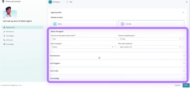 Chris operates based on CRM triggers. For example, when a lead’s status changes to “Ready for Outreach,” Chris automatically initiates a call.
