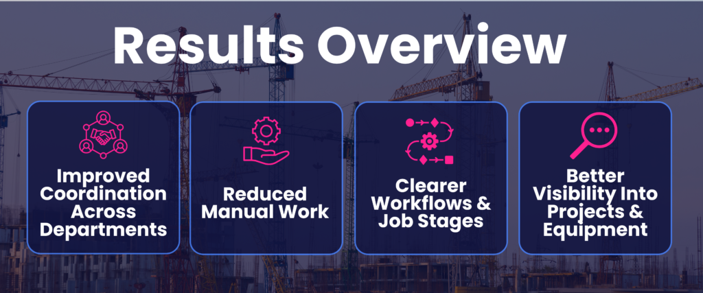 A fast-growing crane rental and construction company operating across multiple states needed a more organized way to manage its workload. The business is highly seasonal—crews push hard to install foundations and set equipment before winter arrives—so efficiency during peak months is essential.
