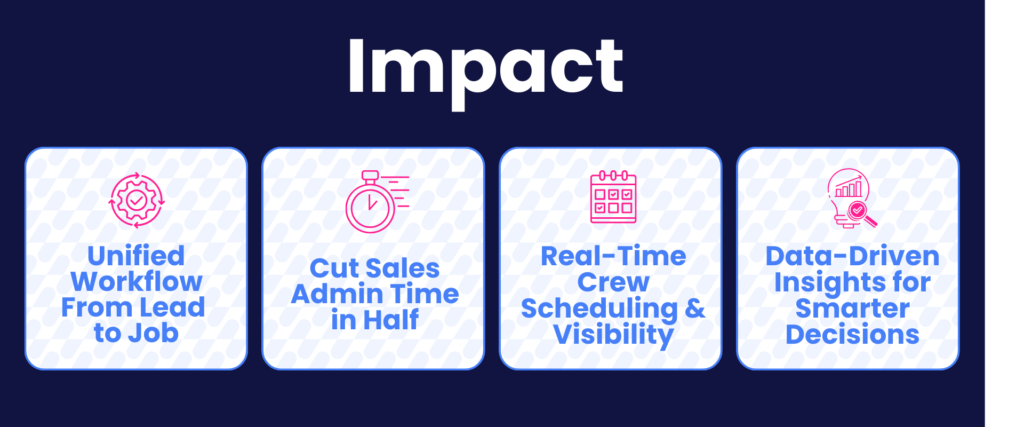- Cut sales admin process time in half by eliminating double entry between leads, deals, jobs, contacts, and accounts