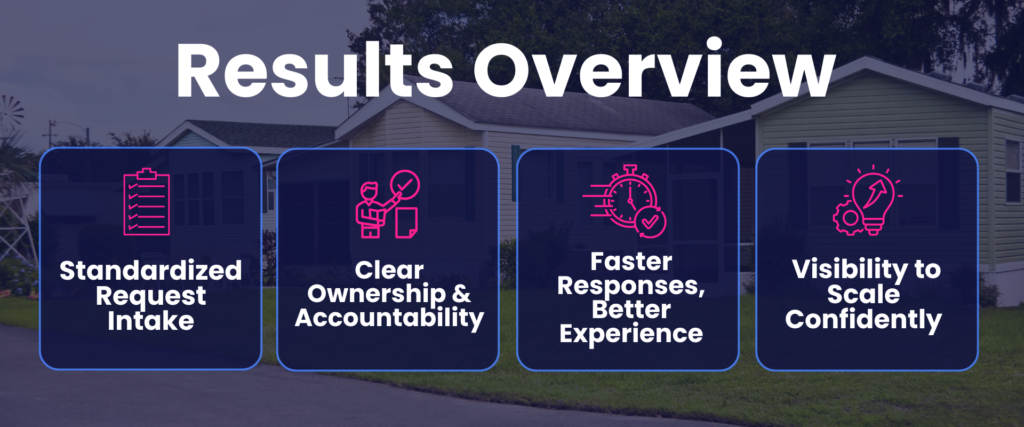 This build sets Regal up with consistent request intake, clear ownership, and leadership-level visibility—so the team can grow to 5,000 residents without rebuilding processes. As a result, Regal now has: